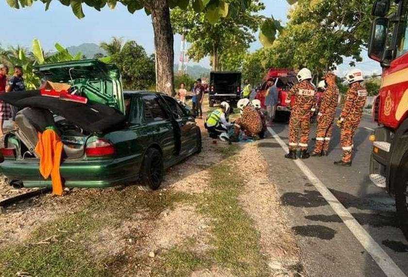 Yusharifuddin berkata, kereta yang dipandu suami mangsa itu dipercayai terbabas dan melanggar sebatang pokok di bahu kiri jalan.
