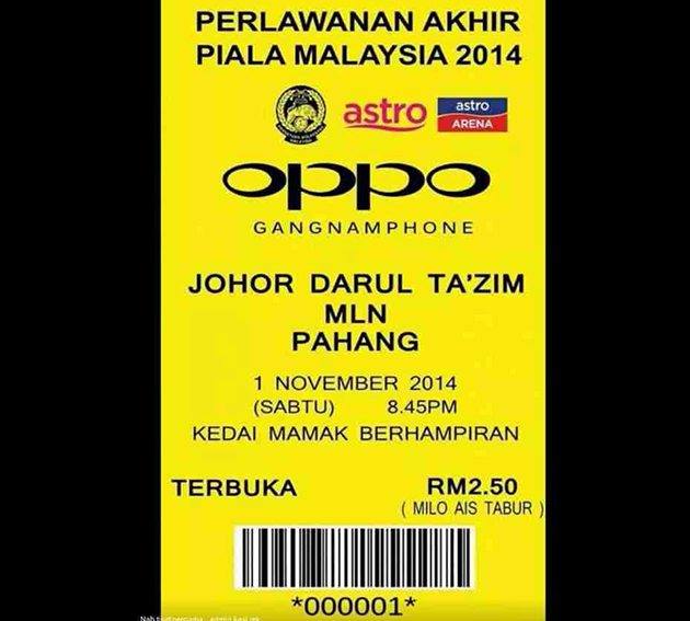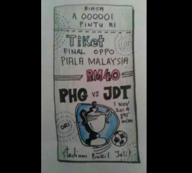 Tiket sebenar perlawanan akhir Piala Malaysia JDT menentang Pahang pada Sabtu - Gambar Astro AWANI