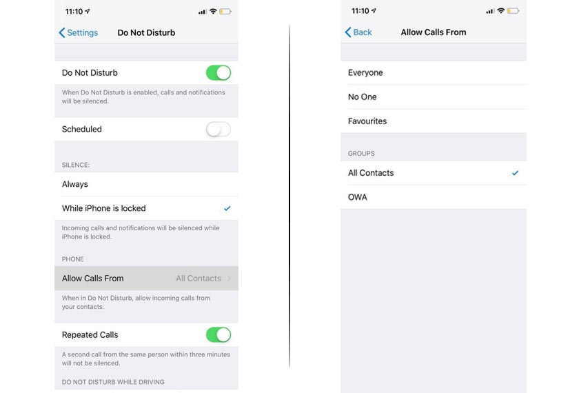 Untuk pengguna iPhone: Buka ‘Settings’, lalu tekan ‘Do Not Disturb’. Kemudian, pilih ‘Allow Calls From’ dan seterusnya ‘All Contacts’.