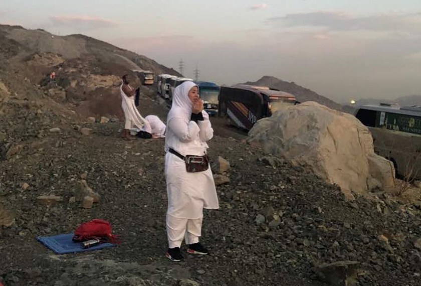 “Selepas solat Asar, saya bersama suami dan beberapa rakan kami mendaki sebuah bukit dan mula mencari ‘port’ kami untuk melakukan solat-solat sunat, berzikir dan berdoa sementara menunggu Maghrib yang menandakan tamatnya waktu wukuf.